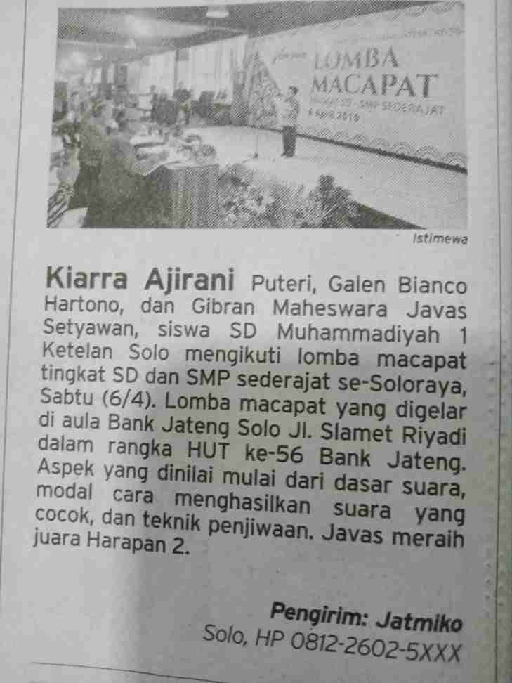 Tiga Siswa Ikuti Lomba Mocopat Bank Jateng 2019