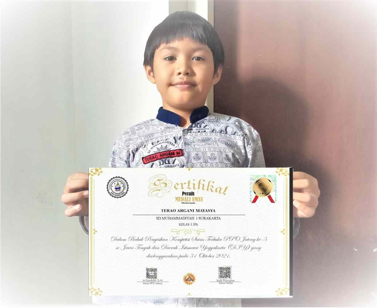 “Semoga terus tumbuh semangat mengikuti kompetisi-kompetisi baik dalam bidang sains maupun lomba lainnya. Berupaya meraih prestasi di tengah pandemi Covid -19,” ucap Terao, penuh semangat kelahiran Surakarta, 31 Oktober 2012.