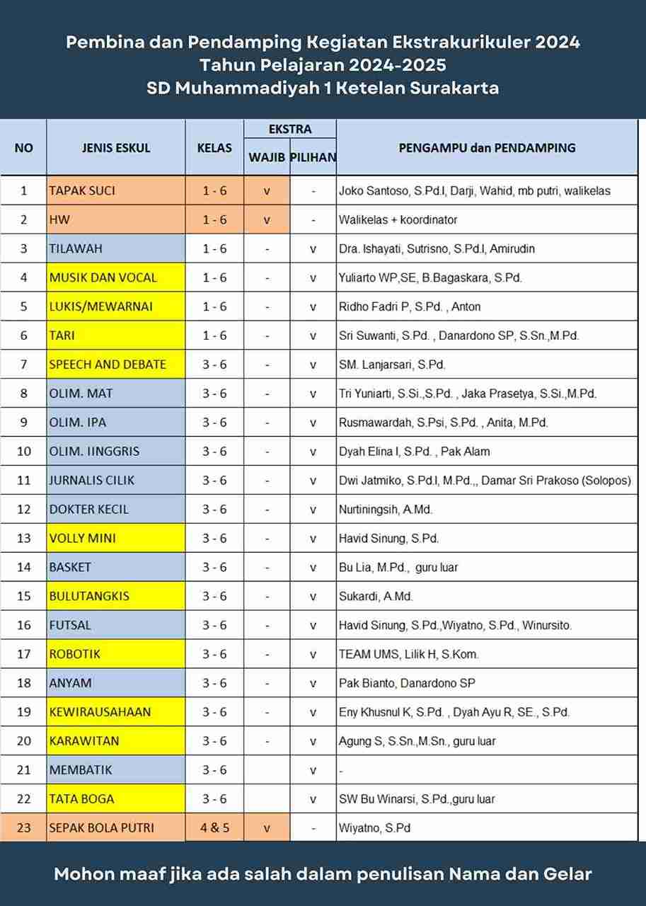 Pembina dan Pendamping Kegiatan Ekstrakurikuler 2024