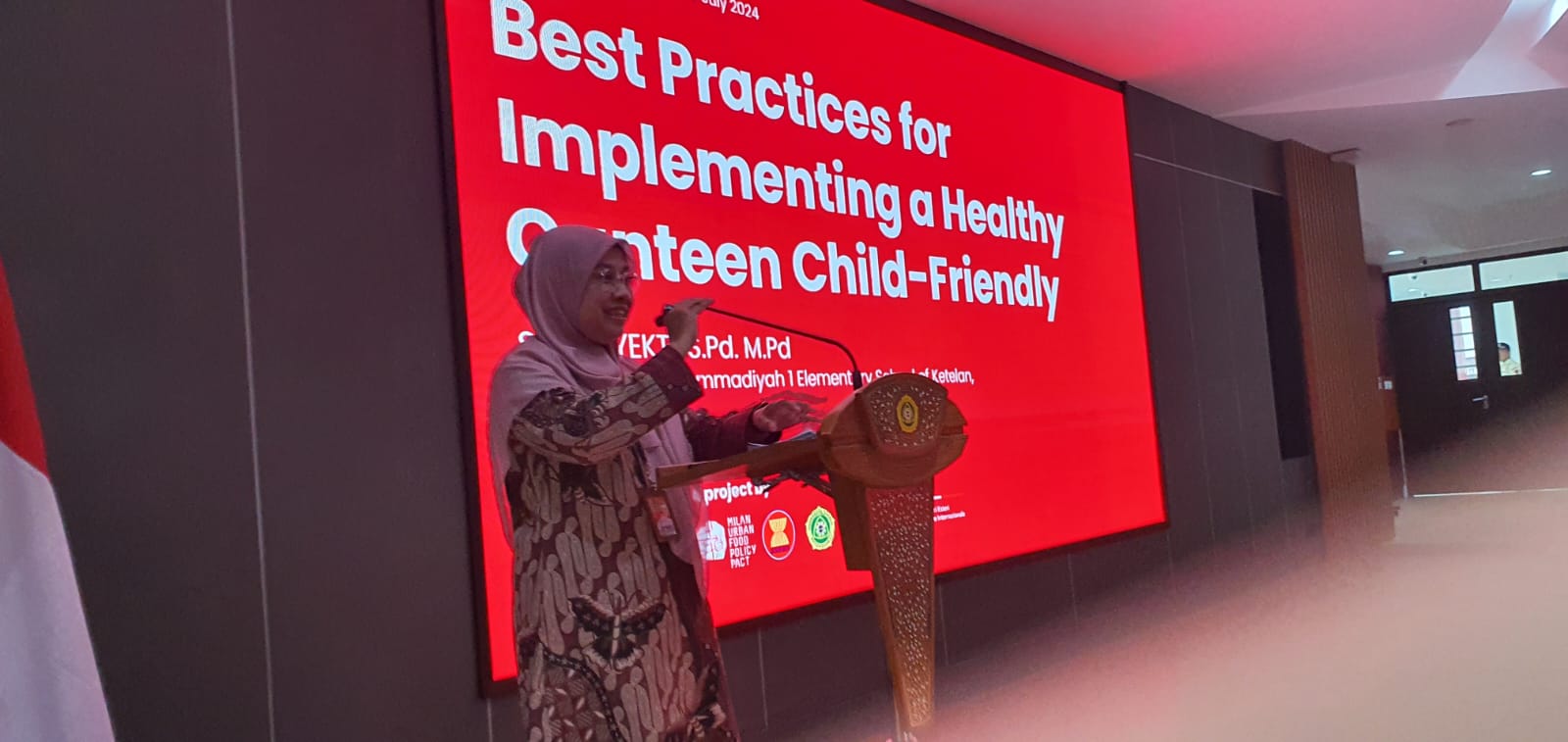 Bu Sri Sayekti SD Muhammadiyah 1 Solo Presentasi Program Kantin Sehat di MUFPP