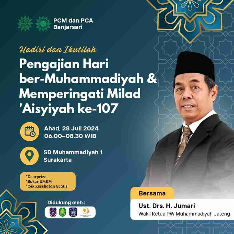 PCM dan PCA Banjarsari: Hadiri dan Ikutilah Pengajian Hari BerMuhammadiyah dan Memperingati Milad ‘Aisyiyah ke-107 17 Juli 2024