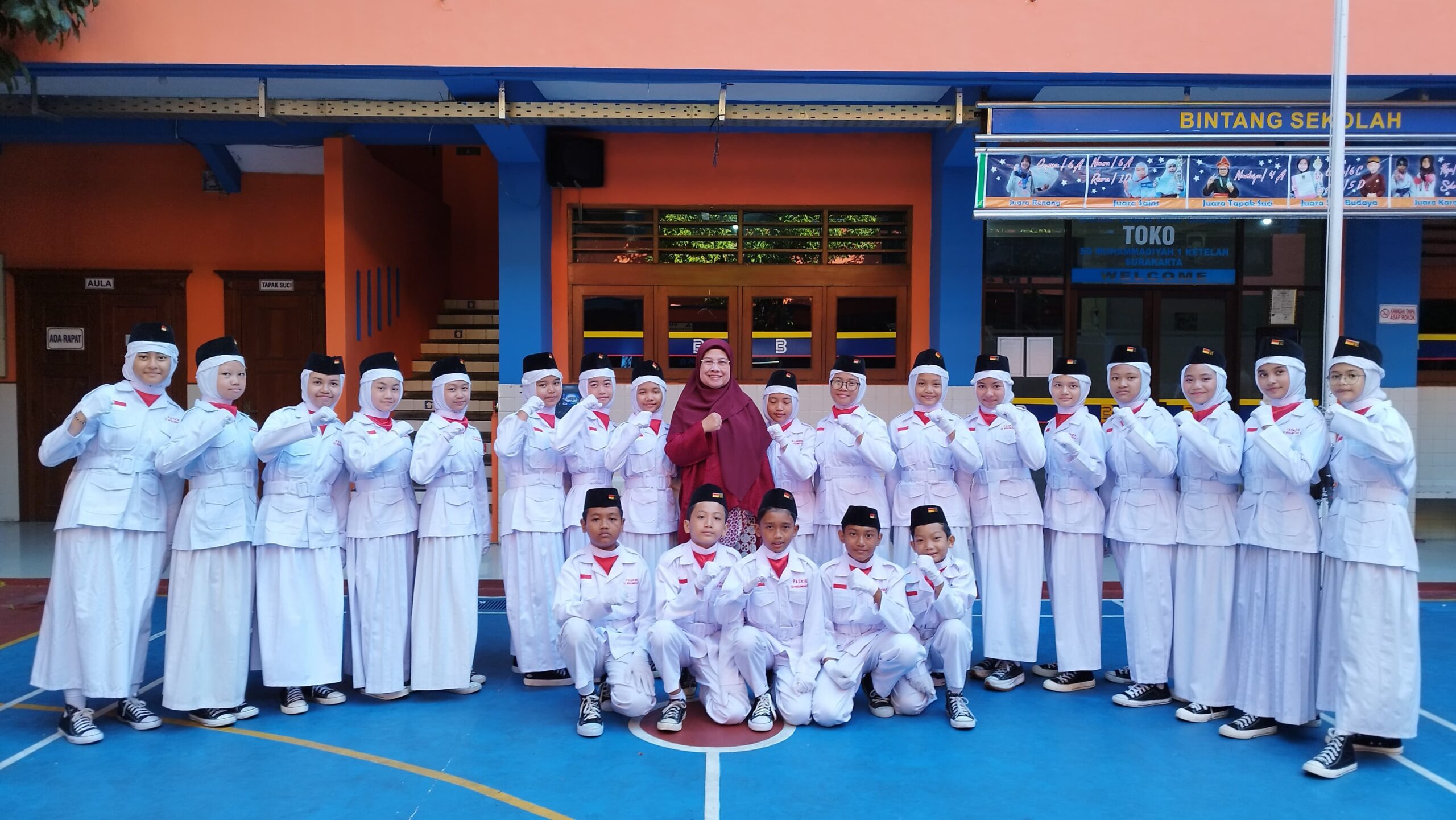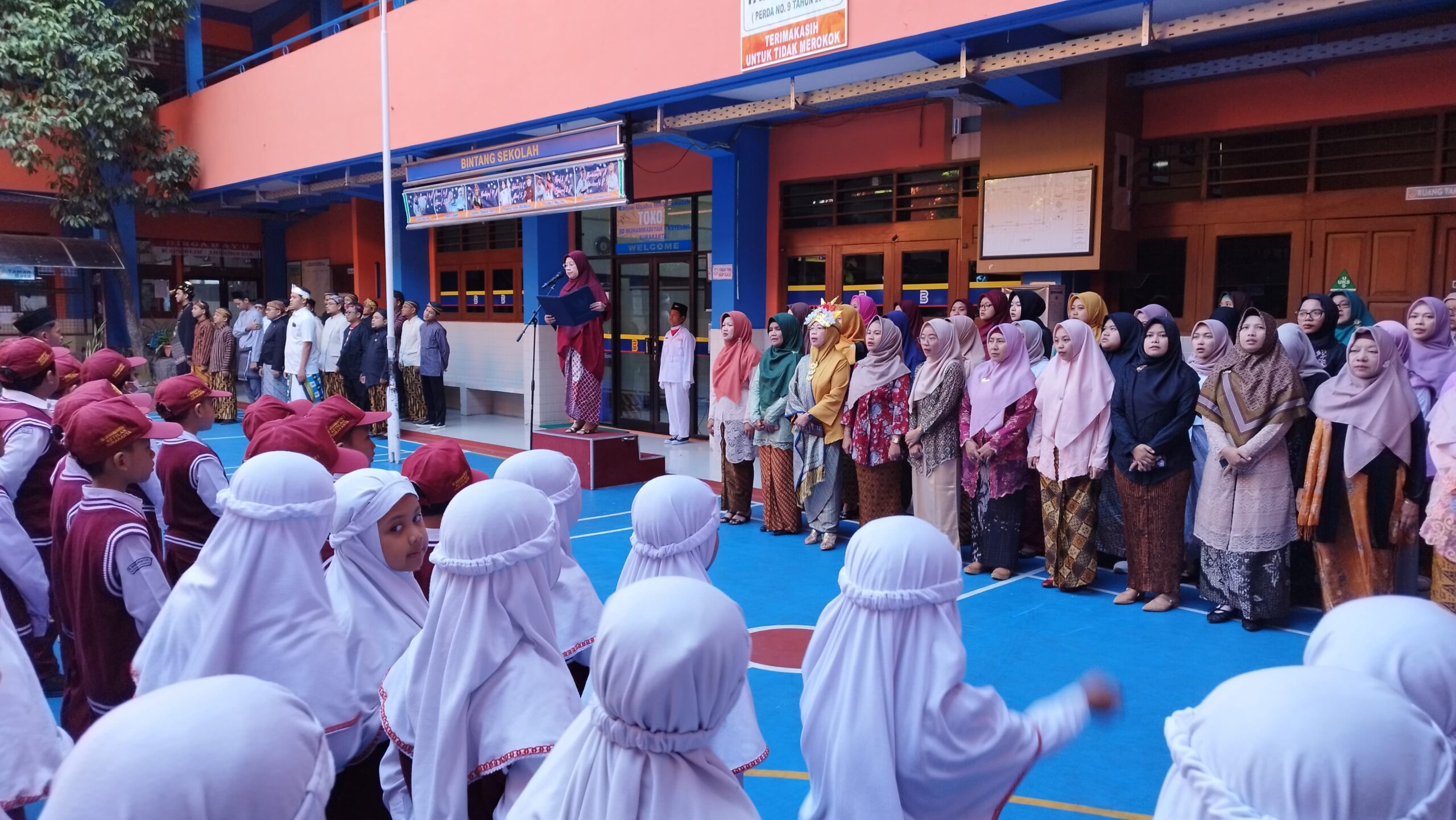 Salah satu sekolah yang menggelar upacara adalah Sekolah Penggerak SD Muhammadiyah 1 Ketelan Surakarta yang beralamat Jalan Kartini No 1 Ketelan Solo Barat Pura Mangkunegaran.